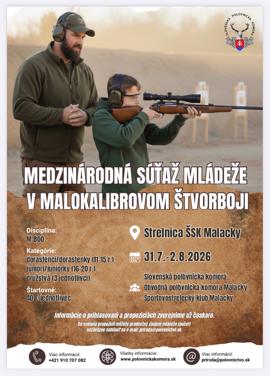 Prinášame vám prvotnú informáciu o nadchádzajúcom podujatí, ktoré spája športového ducha, precíznosť a medzinárodné priateľstvá. Po zorganizovaní vlaňajšej premiérovej súťaže pod taktovkou Českomoravská myslivecká jednota vás spolu s OPK Malacky a ŠSK Malacky pozývame na Medzinárodnú súťaž mládeže v streľbe z malokalibrovky, ktorá sa uskutoční u nás na Slovensku už v lete.